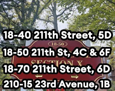BAYSIDE $315,000 3 BR CO-OP Lrg 3 BR, 2 BA Apartment. The Building Offers A Newly Renovated Lobby, Lobby Level Laundry Room. Utilities Include In The Maintenance. 1 Park Space. Close To Shops, Express Bus To NYC, City Bus To Main St., Fort Totten Area And Park.