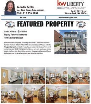 Whitestone • $1,788,000 This spectacular and spacious brick home has 5 BR’s and 3.5 baths. It has two families & separate, fully fin walk-out lower level. Beautiful backyard, garage, and private driveway.