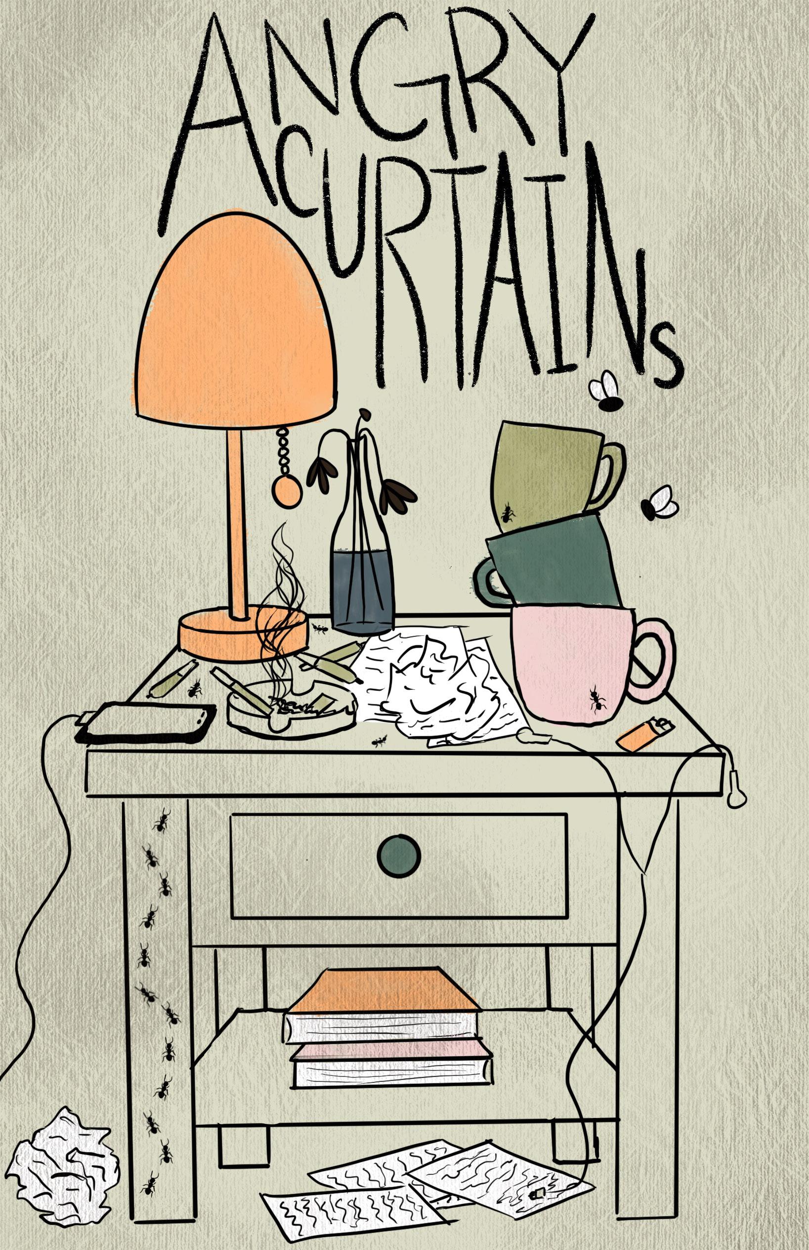 A rustle once again, and I twist my head to find the curtains swaying. Like the ants that eat my skin, I yell at them to stop, but they keep moving. I try to focus on the ceiling, but the shadows cross my eyes. A crack of light hits the floor, and I shudder at its sight. I love my smoke, but now it breaks in rays across the room. The curtains move in such a stirring way, you’d think they’re dancing like I once used to do.