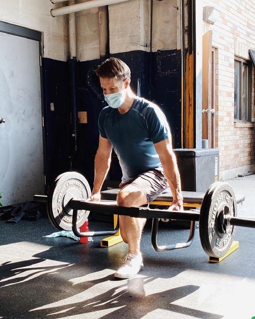 Fall 2020: Despite Toronto’s COVID lockdown, company counsel Cameron Clark (in lululemon’s Metal Vent Tech shirt and Pace Breaker shorts) follows the weight-lifting regimen of his local boutique gym, the Fuel Training Club. QLR