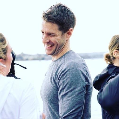 Spring 2019: Cameron Clark, Law’07, gathers with co-workers at a corporate event on Vancouver’s English Bay to welcome, and run with, lululemon’s then-new Global Run Ambassador, Charlie Dark. Cameron is sporting a lululemon “Fast and Free” long sleeve shirt.