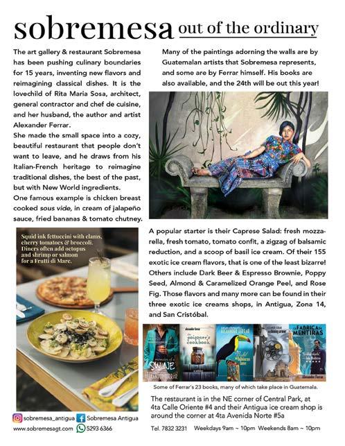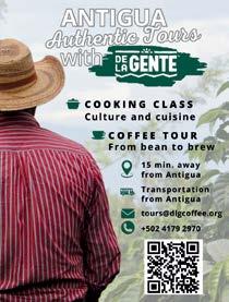 Antigua has many excellent restaurants and cafés, often in stunning locations, as you’ll discover from page 47. Check out the piece by Sofia Letona on Horchata and Jamaica, delicious Guatemalan drinks that include their recipes.