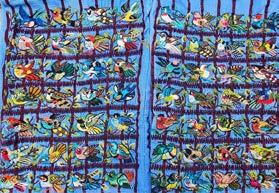 Weavers from San Antonio are famous for their extremely fine brocade work, where colors and designs are woven into the basic fabric of the textile using additional added threads. These designs are based on elaborate counted patterns, called marcadores. In this case, we can see two different bird-themed marcadores. One additional amazing feature of San Antonio weavers is that their brocade work is usually double sided, meaning the textile is reversible. For these reason, these pieces are expensive, durable, and highly valued.