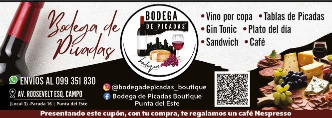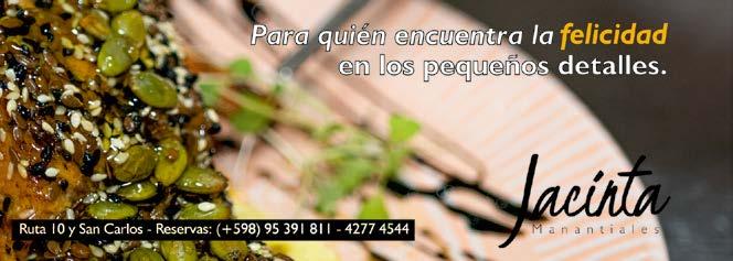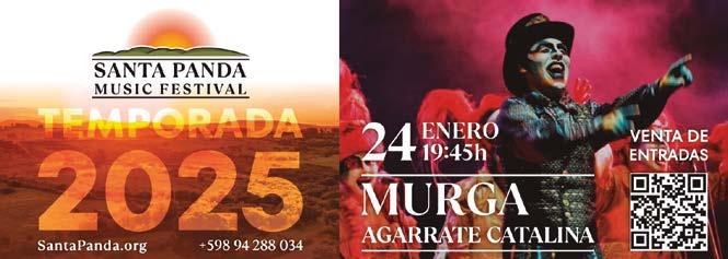 The Te House Feria y Seminario, “Té en el Este” de 17 a 22 h. Beverly Hills. Ver nota en pág. 9 La Roca Espacio de Arte hoy Roselyne Deana te recibe de 18 a 21h. Avda. Laguna del Sauce y Ruta IB km 116. T. 092 221 463 15 edición José Ignacio Film Festival largometraje “Anora”, Dir. Sean Baker 18+, 2024. Comedia, drama, romance.19 h en Bajada de los Pescadores. José Ignacio. Acceso gratuito Arboretum Lussich, música en vivo. Gratuito, Camino Lussich a 500 m de Ruta IB