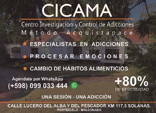 tre otras. El Método surge a partir del conocimiento y profundo estudio de la mente humana y su funcionamiento, a sabiendas de que existe un cerebro racional (o inteligente) y un cerebro primitivo (o subconsciente) y la interacción entre ambos. La medicina actual intenta negociar con el cerebro racional, mientras el Método Acquistapace interactúa con ambos cerebros. La efectividad es superior al 80% y los procedimientos se realizan sin medicación, sin internación, sin síndrome de abstinencia y en una sola sesión. Acquistapace ha atendido más de 60.000 personas en Uruguay. Para coordinar comunicarse al T. 099 033 444. Lucero del Alba y Del Pescador km. 117.5 www.cicama.com.uy
