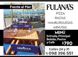 FULANAS - Mesa buffet de copetín. Plato principal caliente, Variedad de carnes (en sus respectivas salsas). Mesa de postres. Música en vivo, Karaoke y cotillón. Precio: U$S 190. Menores de 12 años U$S 90. T. 098 396 351