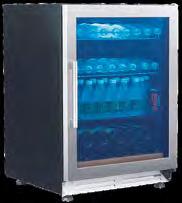 128 a 155 botellas (botella 750 ml estándar burdeos y borgoña) Tamaño: 59.5 cm de alto x 68 cm de profundidad x 1.62 m de alto Una zona de enfriamiento con motor compresor, gas R600a Rango de temperatura: 5 C a 22 C Marco de puerta de vidrio plástica negra o acero inoxidable 14 estantes deslizantes de madera Voltaje y frecuencia: 110 ~ 240V / 50 ~ 60Hz Energía y electricidad: 130W / 0.7A