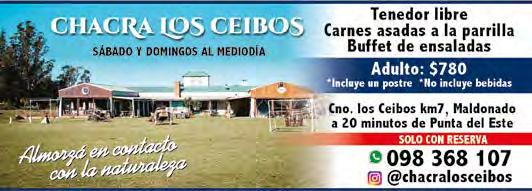 Chacra los Ceibos, almuerzo tenedor libre. Ver aviso pág. T. 098 368 107 Van Gogh Muestra Multisensorial, ver info en Pag. 13 Circo de los Dinosaurios y Dragones, ver nota en pág. 17