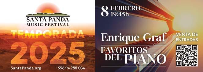 Ubicada en el hermoso entorno de las Sierras de las Cañas la chacra Santa Panda, asumió el reto de traer y reproducir en Uruguay algo de la esencia de Toscana, donde sus característicos cerros y colinas, son el marco perfecto para una puesta de sol de ensueño. Durante todo el verano ofrece el ciclo Santa Panda Music Festival, que convoca a destacados artistas. Los próximos shows serán el sábado 1 a las 19:45 horas con la murga más reconocida del país, Agarrate Catalina y el sábado 8 será el espectáculo “Favoritos de Piano” a cargo de Enrique Graf a las 19:45 horas. Se ofrecerá un menú gastronómico, vino y refrescos. Habrá servicio de transporte saliendo del estacionamiento de Devoto, Av. Roosevelt a las 18:30 horas -costo adicional $500-. Entradas a la venta en Santapanda.org.