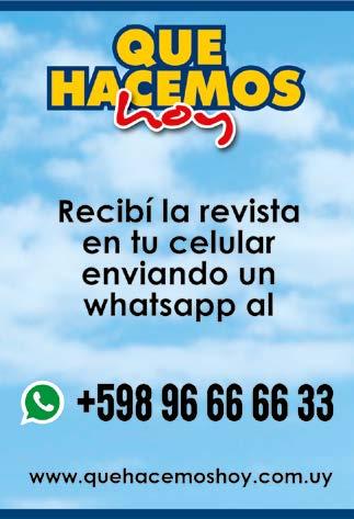 años gratis. T. (+598) 9142 5120 Regata Rolex para Clase Internacional J70 - 13 horas Regatas Barlovento – Sotavento en Punta del Este. After Race en el YCPE. Día de Nuestra Señora de la Candelaria patrona de Punta del Este desde 17 h. Ver nota en pág. 8 La Bizcochería, música en vivo “Belén Silveira” 19 h y 15% de descuento durante el show. Fco. Salazar y Yaro. P. 2 Brava. T. 4247 8932