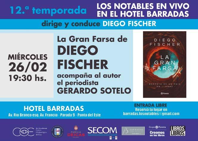 Los Notables en vivo, hoy La Gran Farsa. Retrato de un País en llamas de Diego Fischer, 19.30 h. en el Hotel Barradas, dirige y conduce Diego Fischer. Entrada libre. Grupo Planeta ver nota en pág. 6