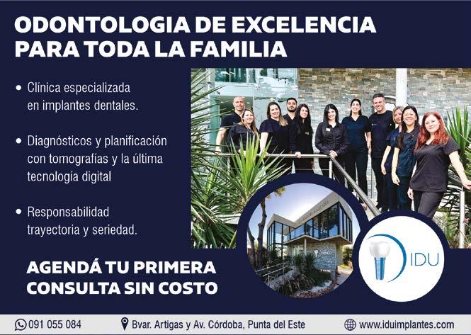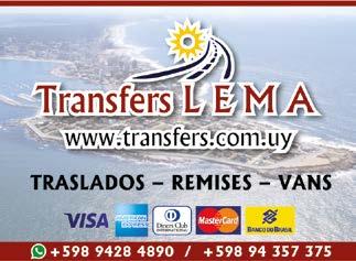 Jardín Japonés Punta, un espacio de cultura japonesa en Uruguay. Parque privado con más de 12 hectáreas combina flora típica de Japón, azaleas, camelias y glicinas, cascadas, puentes y senderos serpenteantes. Visitas guiadas o autoguiadas con agenda previa y eventos temáticos. Ruta 12. T. +598 94 500 125 www.jardinjaponespunta.com Festival Internacional de Cine Sala Cantegril 20:30 horas Ceremonia de clausura. acceso por invitación disponible en Sala de Prensa del Festival. “Astronauta” Dir.Paul Vega (Perú/Colombia/Uruguay, 80 min.) Grupocine Panorama internacional. 17 h “Marco” Dir. Aitor Arregui, Jon Garraño (España, 108 min.) - 19:15 h “La Venganza” (Sons) Dir. Gustav Moller (Dinamarca/Suecia/Francia,100 min.) 21:30 h “La herencia” (Thank you for banking with us) Dir. Laila Abbas (Palestina/ Alemania, 92 min.). Ver nota en pág. 2 Casa de la Cultura: exposiciones de Alex Morales Retrospectiva, espíritu del caminante - Matías Choroszczucha – “Colores del viento” de Gonzalo Cabrera Yoset - Muestra “Cuentos Chinos” sobre la actriz China Zorrilla - Ecos de Punta del Este de Fulvio Eguivar y Martín Picón. Todos hasta el 27/2 de 10 a 20 h Museo Mazzoni muestra “La Catedral”, exposición conmemorativa a 130 años de la Consagración del Templo. Ituzaingó 789 Maldonado Arboretum Lussich, 18 h Riki Ra, espectáculo infantil. A la gorra. Camino Lussich a 500 m de Ruta IB km. 116. T. 092 221 463 Alternatus Uruguay Centro de Rescate de Reptiles, visitas guiadas, cría y rehabilitación, anaconda, boas, pitones gigantes, iguanas, tortugas, lagartos y serpientes de todo el mundo. Ruta 37 km. 1.400. Piriápolis. Entradas $ 200.- menores de 12 $ 100 y menores de 4 gratis. T. 098 296 206 Concierto de la Orquesta Departamental 19 h en Plaza José Ignacio. Gratuito. T. 4223 1786 Azotea de Haedo 19.30 h “Ensamble del Este”. Propuesta a cargo de María José Badano (voz), Diego Núñez (violín), Rodrigo