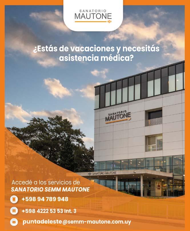 Un lugar donde se respira un aire distinto: este centro médico de alta calidad, es dirigido por el doctor Erik Nadruz, nombrado embajador de Uruguay en Medicina Hiperbárica por Biobárica. Este tratamiento forma parte de una nueva visión de salud enfocada en mejorar la calidad de vida y se consolida como una opción efectiva y profesional para quienes buscan bienestar. La cámara hiperbárica es un dispositivo donde el paciente respira oxígeno puro al 100%, a una presión mayor que la atmosférica. Este proceso, conocido como oxigenoterapia hiperbárica, permite que el oxígeno se disuelva en el plasma sanguíneo y llegue a tejidos y órganos de forma mucho más eficiente. Eso se traduce en más energía, regeneración, reparación y rejuvenecimiento. Clínica Select también cuenta con todas las especialidades médicas. Avenida Roosevelt esq Mónaco frente a Punta Shopping Tel 095 902 244.