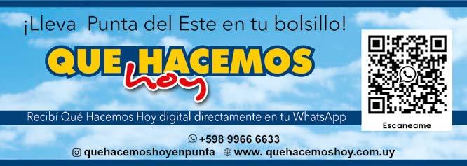 sión Náutica, seguida a las 18 por la participación del Coro Canario en el puerto, frente al Yacht Club, 18:30 comenzará la procesión a pie hacia la iglesia y a las 19 se celebrará la Santa Misa en el marco de “Punta del Este le canta a su Patrona”. Programación completa en Agenda QHH. Inscripciones para la pro-