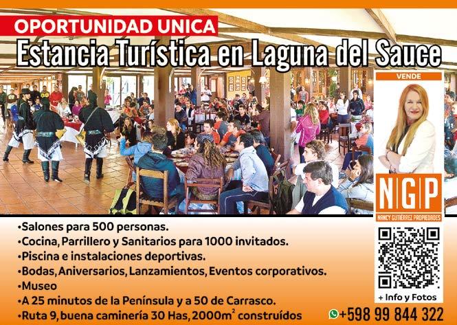 José Ignacio International Film Festival Cortometrajes seleccionados, Bicho, Don´t Damn the Sun, Cagüeyro, Bajamar, Quedamos Así, Salida Anticipada y Lodo. Cita 16 h y función 17 h en Pavilion Vik. Entrada con reserva en web del festival . Pueblo Gaucho parque temático que rescata la tradición, hoy de 18 a 20 h Taller de danza tradicional con el Prof. Wilner Ferreira. Entrada gratuita. Rincón del Indio T. 091 446 585. Arboretum Lussich, música en vivo 18.30 h, “Son de sierra” Popular de rock, gratuito en Arboretum Lussich. Punta Ballena. T. 091 730 192. Azotea de Haedo, Presentación literaria: “Que no quede en el tintero”. Las historias más increíbles de la música uruguaya. Autor: Mauricio Rodríguez. Gratuito. Bulevar Artigas y Mercedes. T. 4222 3288. Encendido de las velas de Shabat, hoy 19.30 h. De Gardel a Piazzolla, Valentina Estol voz, junto a Ensamble Atípico. 20 h en Teatro MACA. Gratuito con inscripción previa en passline.
