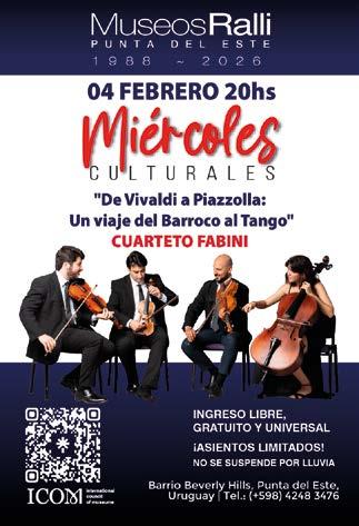 Ralli 20 h “De Vivaldi a Piazzolla: Un viaje del Barroco al Tango” Cuarteto Fabini. Gratuito. Bº Beverly Hills. Pizza Sing Karaoke, abierto desde 20 h. Reservas 094 415 620. Sunset de la Prensa 20 h en La Pinduca. Por invitación. Ver nota en Pág. 8