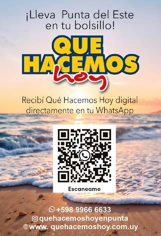 Azotea de Haedo, 20 h Teatro: “La orilla”. Patricia Álvarez y Sebastián Slepovich Restaurante Bossa Nova show con grupo IDG. T. 099 298 339 Diego Torres presenta su nuevo álbum Mi Norte & Mi Sur, y recorrerá sus grandes éxitos. Se presenta en Enjoy Punta del Este. Entradas en Suticket.com Piano Piano “Un Hincha como Vos”: Una Catarsis de la Pasión Argentina. El Tano Pasman en una comedia que trasciende la camiseta. Una mirada divertida y emotiva. Se presenta en Enjoy. Entradas en suticket.com Piano Piano Teatro “Vení que te cuento” para llorar de risa. Patricia Alvarez 22 h en Black Box. P. 2 Reservas T. 099 389 237 DOMINGO 8