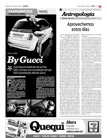 iat lanza la reedición de su Fiat 500 y lo hace con una edición de lujo, 500 automóviles edición limitada customizados totalmente por la firma Gucci. Se trata de un pequeño utilitario, plagado de grandes detalles. El coche es seguro, práctico y ecológico, pero en su edición Gucci, destaca por sus colores, en blanco o negro brillante y matizado por la banda verde-roja de Gucci.