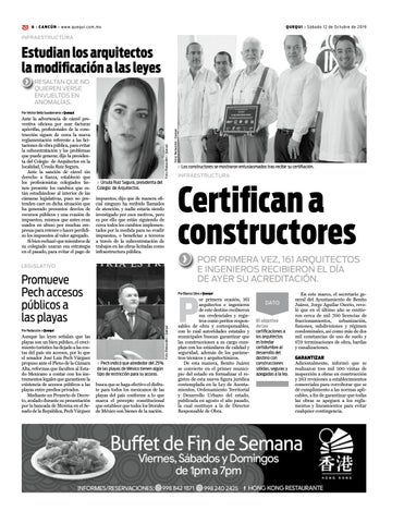 or primera ocasión, 161 arquitectos e ingenieros de este destino recibieron sus credenciales y registros como peritos responsables de obra y corresponsables, con lo cual autoridades estatales y municipales buscan garantizar que las construcciones a su cargo cumplan con los estándares de calidad y seguridad, además de los parámetros técnicos y arquitectónicos. De esta manera, Benito Juárez se convierte en el primer municipio del estado en formalizar el registro de esta nueva figura jurídica contemplada en la Ley de Asentamientos, Ordenamiento Territorial y Desarrollo Urbano del estado, publicada en agosto el año pasado, la cual sustituye a la de Director Responsable de Obra.