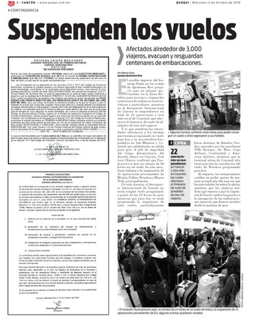 nes se suspendieron en Cancún y otra más en Cozumel, las cuales afectaron el itinerario de vuelo de alrededor de tres mil viajeros.