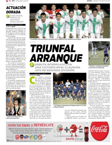 on solitaria anotación del ariete chetumaleño Mendivi Mis al minuto 75, el Interplaya derrotó por la mínima diferencia a los Ocelotes de la UNACH en partido disputado en el campo de la Unidad Deportiva “Mario Villanueva Madrid” para iniciar así con el pie derecho el Clausura 2012 de la Liga Premier de Ascenso (Segunda División). En la primera mitad del encuentro ambas escuadras salieron con todo en busca de la victoria, sin embargo, ninguna de las dos pudo crear opciones claras de gol y los primeros 45 minutos se llevaron a cabo con un duelo trabado en media cancha donde nadie podía inclinar la balanza a su favor. Para la parte complementaria, el Interplaya abrió más la cancha y jugó más por los costados alcanzando su justo premio al minuto 75, luego de que Pedro Noyola desbordó por la banda derecha y