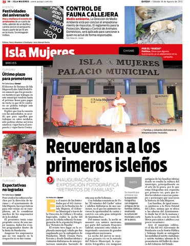 antiguas de las familias isleñas donde se resalta la cultura del municipio, principalmente en el arte de la pesca, por lo que estas fotografías son expuesta por primera vez, para que todos los isleños conozcan paisajes y personajes que marcaron la historia de Isla Mujeres. Las familias, de igual manera asistieron a la Feria Estatal del Libro, misma que se ubica a las afueras del Ayuntamiento desde las 10 de la mañana y hasta la noche, con la venta de libros para niños y adultos a un precio económico. Ayer el municipio celebraró el día del 162 Aniversario de Fundación con la Sesión Pública y Solemne donde se entregarón las medallas al mérito ciudadano y mérito turístico además de la presentación del ballet de cámara del Gobierno del Estado.