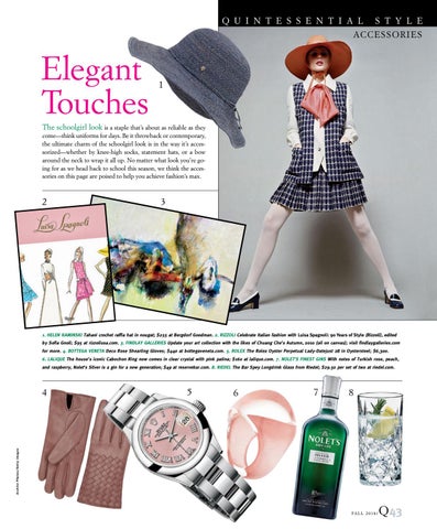 1. HELEN KAMINSKI Tahani crochet raffia hat in nougat; $255 at Bergdorf Goodman. 2. RIZZOLI Celebrate Italian fashion with Luisa Spagnoli: 90 Years of Style (Rizzoli), edited by Sofia Gnoli; $95 at rizzoliusa.com. 3. FINDLAY GALLERIES Update your art collection with the likes of Chuang Che’s Autumn, 2010 (oil on canvas); visit findlaygalleries.com for more. 4. BOTTEGA VENETA Deco Rose Shearling Gloves; $440 at bottegaveneta.com. 5. ROLEX The Rolex Oyster Perpetual Lady-Datejust 28 in Oystersteel; $6,300. 6. LALIQUE The house’s iconic Cabochon Ring now comes in clear crystal with pink patina; $160 at lalique.com. 7. NOLET’S FINEST GINS With notes of Turkish rose, peach, and raspberry, Nolet’s Silver is a gin for a new generation; $49 at reservebar.com. 8. RIEDEL The Bar Spey Longdrink Glass from Riedel; $29.50 per set of two at riedel.com.