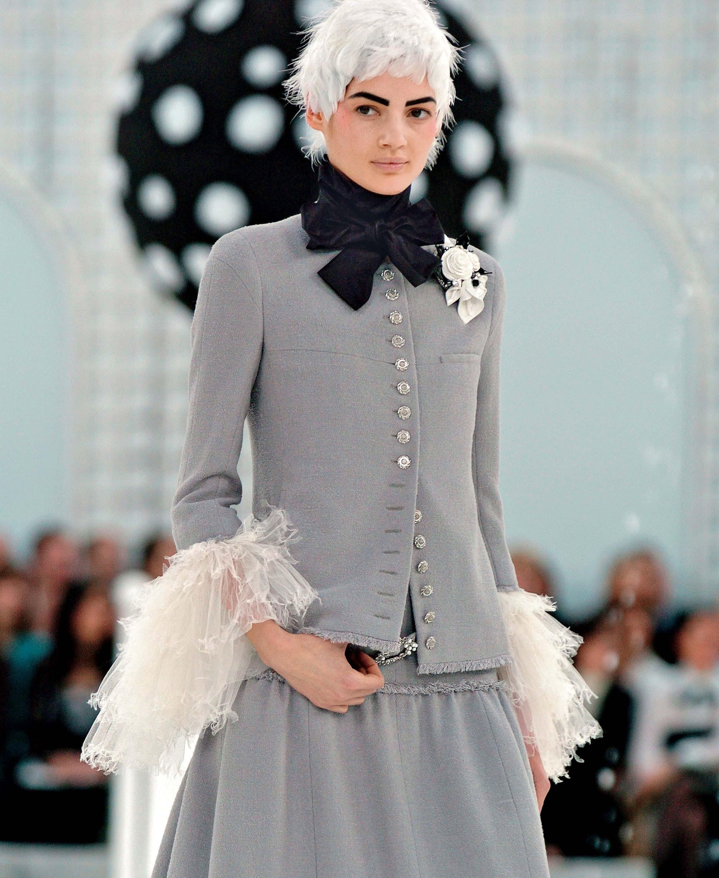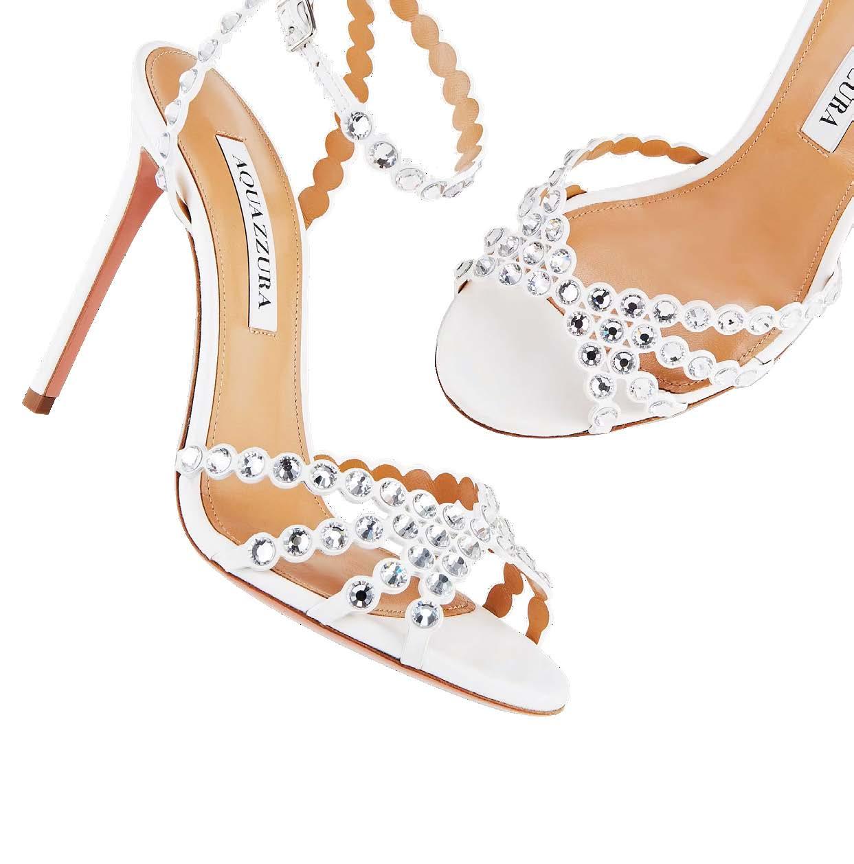4. CHANEL A breezy look from Chanel’s Resort 2024 Collection. AQUAZZURA Tequila Sandal 105 in white; $1,450 at aquazzura.com.