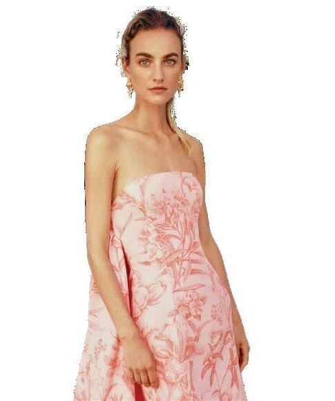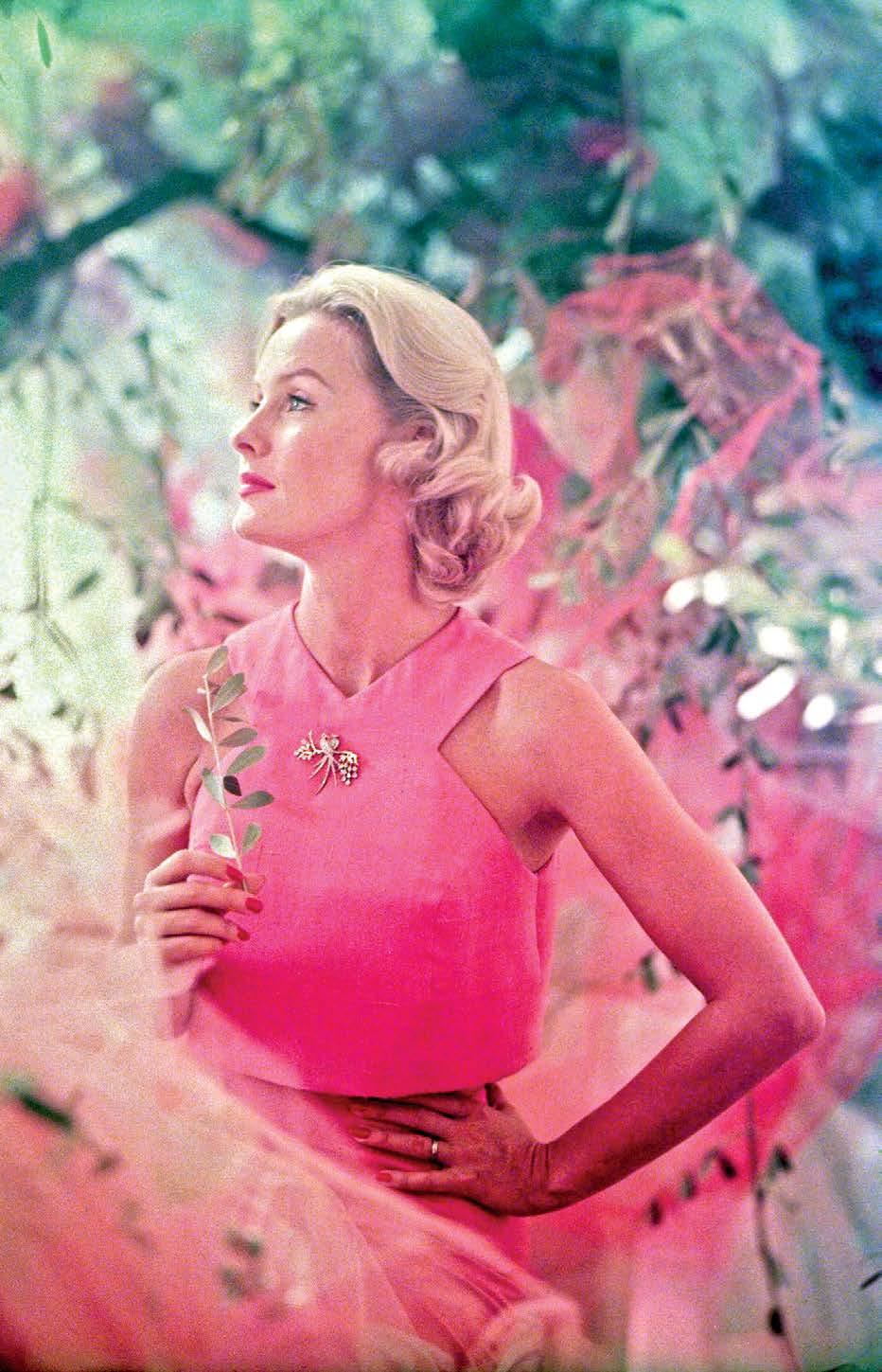 1. DINA MERRILL was an actress who earned over one hundred film and television credits from the late 1950s through the 2000s. As a young girl, Merrill lived in Palm Beach’s Mar-a-Lago, now owned by Donald Trump. Above she is photographed by Joyce Rainboldt for Vogue in 1959. 2. MANOLO BLAHNIK Carolyne Kitten-Heel Halter Pumps; $795 at bergdorfgoodman.com. 3. MONIQUE LHUILLIER A pink floral gown from the Spring 2025 Collection. 4. VAN CLEEF & ARPELS Mother of Pearl Flower Brooch of 18k yellow gold, mother-ofpearl and brilliant-cut diamonds totaling 0.55 carats; $41,150 at 1stdibs.com. 5. ASPREY Pearl Drop Earrings with pink pearshaped spinels and pearl drops; $10,700 at asprey.com. 5. OLYMPIA LE-TAN Bird of Paradise Warner House Clutch, 20cm x 14cm x 3cm; $1,190.24 at olympialetan.com.