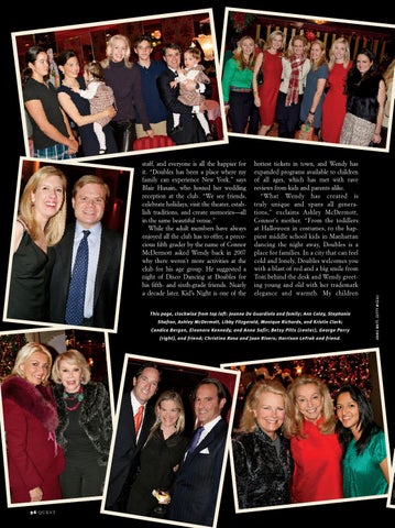 hottest tickets in town, and Wendy has expanded programs available to children of all ages, which has met with rave reviews from kids and parents alike. “What Wendy has created is truly unique and spans all generations,” exclaims Ashley McDermott, Connor’s mother. “From the toddlers at Halloween in costumes, to the happiest middle school kids in Manhattan dancing the night away, Doubles is a place for families. In a city that can feel cold and lonely, Doubles welcomes you with a blast of red and a big smile from Tom behind the desk and Wendy greeting young and old with her trademark elegance and warmth. My children