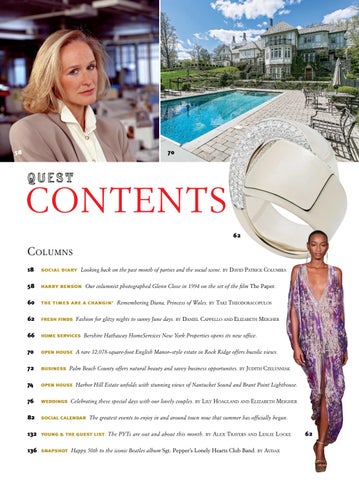 Looking back on the past month of parties and the social scene. by david paTrick columbia Our columnist photographed Glenn Close in 1994 on the set of the film The Paper. Remembering Diana, Princess of Wales. by Taki Theodoracopulos