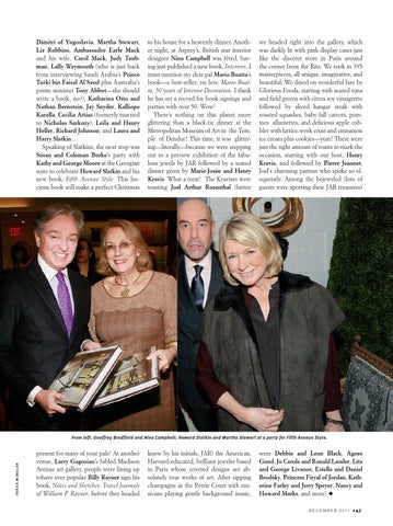 were Debbie and Leon Black, Agnes Gund, Jo Carole and Ronald Lauder, Lita and George Livanos, Estella and Daniel Brodsky, Princess Firyal of Jordan, Katherine Farley and Jerry Speyer, Nancy and Howard Marks, and more! X DECEMBER 2013 147