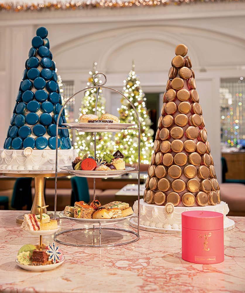 Since its founding by John Jacob Astor more than a century ago, The St. Regis New York has stood as a Manhattan icon—and during the holidays, the landmark hotel shines brighter than ever. Its storied guestrooms and grand public spaces, from the King Cole Bar to La Maisonette, keep guests coming back year after year. This season, the hotel welcomes back its celebrated partnership with Ladurée, the beloved Parisian patisserie. Guests entering the Fifth Avenue flagship are greeted by shimmering garlands, velvet bows, and a spectacular 12-foot Ladurée holiday tree adorned with oversized macarons in gold, cream, and peacock blue. Macaron pyramids fill the windows, while a signature Ladurée cart offers a picture-perfect moment in the lobby. As part of the collaboration, La Maisonette will host a Ladurée Holiday Afternoon Tea—featuring signature macarons, Eugénie biscuits, and the iconic Marie-Antoinette tea blend—served in the hotel’s salon through January 2nd.