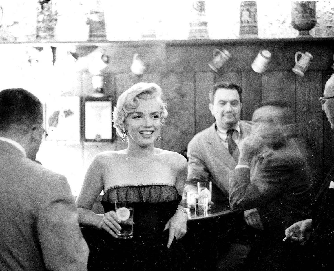 Clockwise from top left: The 21 Club’s beloved interior; Marilyn Monroe celebrated her film The Seven Year Itch at the 21 Club, 1954; Jacqueline Kennedy Onassis, Frank Sinatra, and bodyguard Jilly Rizzo arriving at the 21 Club after his New York City concert, 1975; workers outside of the 21 Club during the pandemic, vowing to return in December of 2020; Leonard Lauder and more dining at “21.” Opposite page, from above: Entrance of the 21 Club at 21 West 52nd Street, New York; Terry Dinan and Bruce Snyder, “21” Vice Presidents, judicious Gatekeepers, and dear pals to their “regulars.”