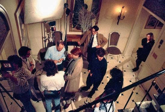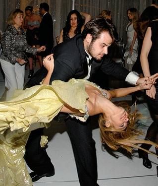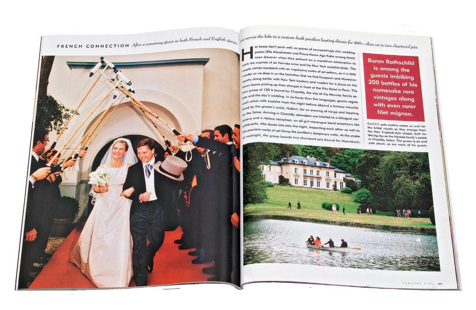 cadre of jet-setters, so it is little wonder as we drop in on the fes tivities that we find European and Moroccan royalty doing battle with New York bankers and models for a place on the luxury buses picking up their charges in front of the Ritz Hotel in Paris. In no fewer than five languages, guests regale each other with exploits from the night before about a bateau-mouche hired by the groom’s uncle.” —Kristina Stewart, January 2000