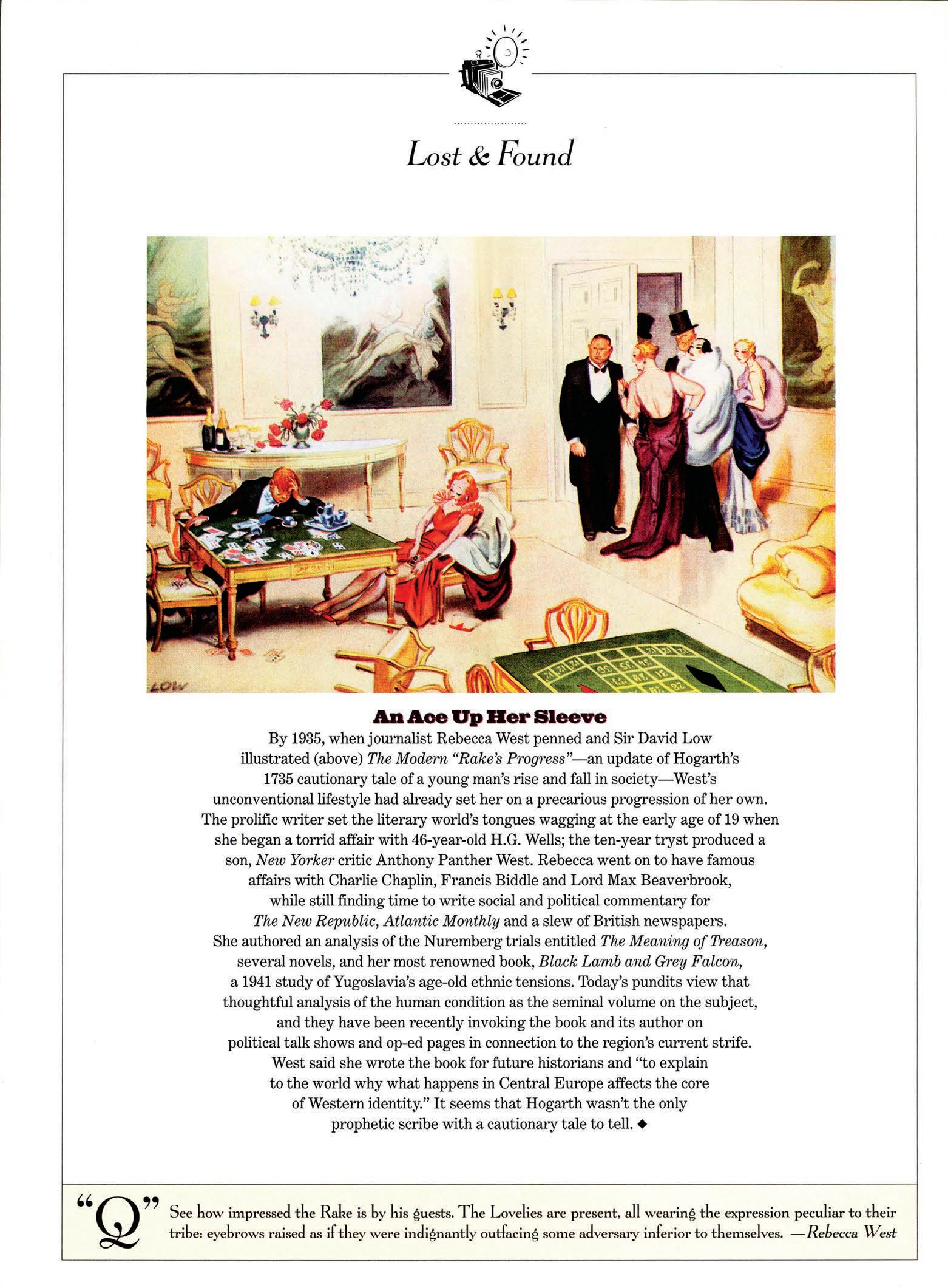 David Patrick Columbia; Swifty’s List December 2001; Bark of the Town Minnie the dachshund in E.B. White’s office; Quest’s Columnist Taki Theodoracopulos; Bill Cunningham; Dominick Dunne; Quest’s Contributing Photographer Harry Benson.