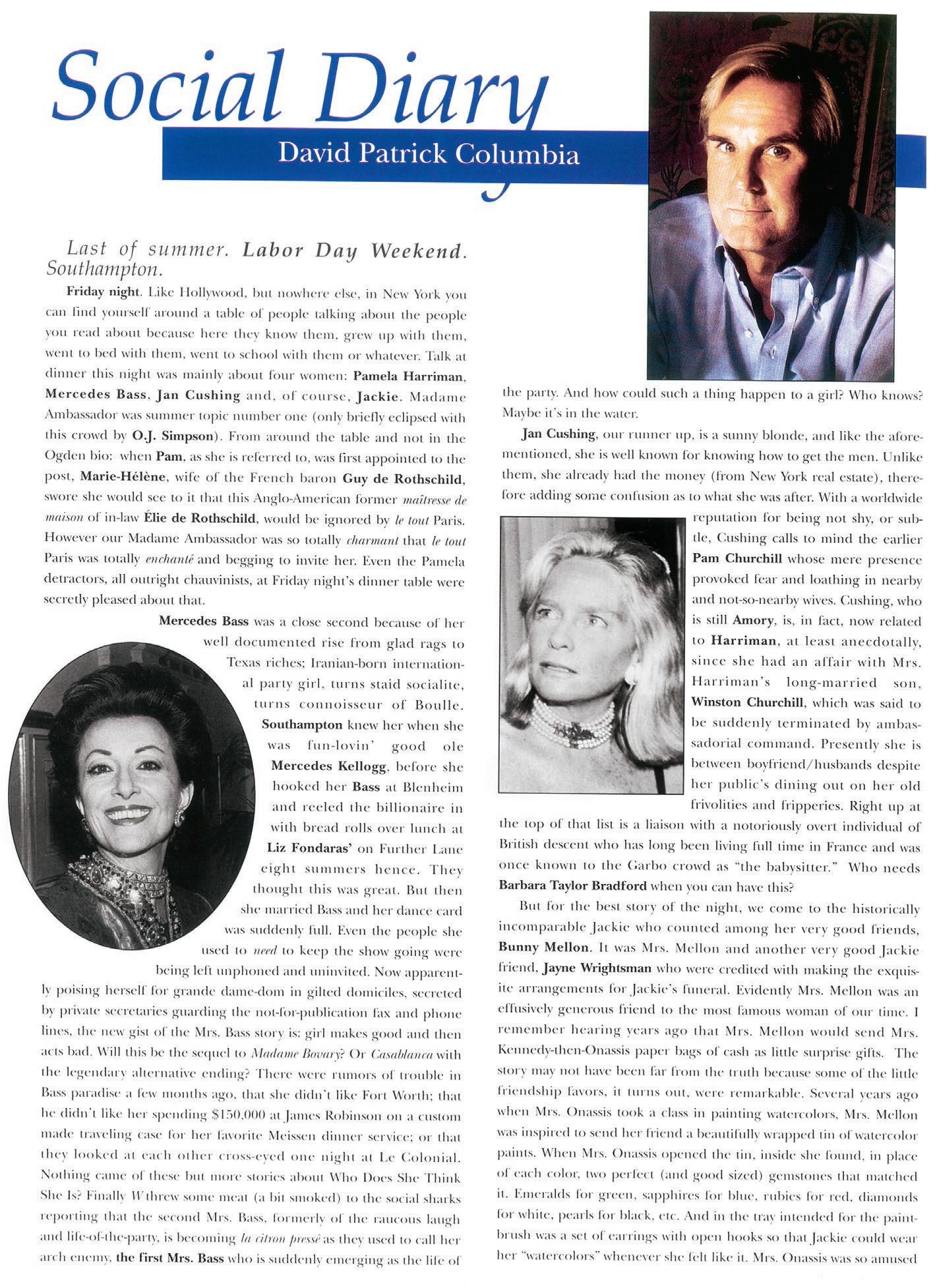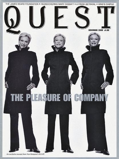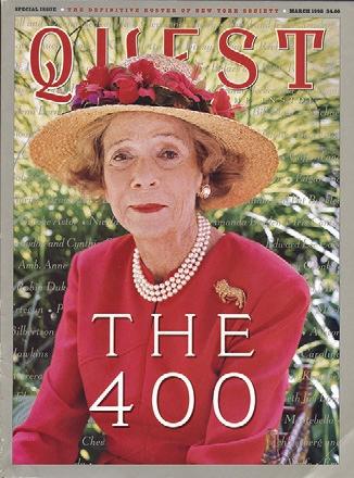 LOOKING BACK on history of Quest 40 years on. What struck me most, perusing Quest issues of the past 40 years, was how much our culture and social life in New York has changed since Quest first debuted in 1987. “Nouvelle Society,” a term coined by Mr. Fairchild’s WWD, of the movers and the shakers, was reigning in New York at that moment. Glamour girls like Blaine Trump, Carolyne Roehm, Gayfryd Stein-