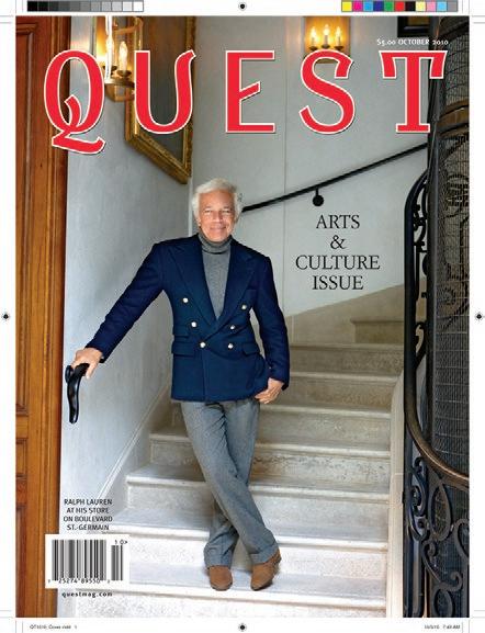 Q uest—New York From The Inside is published monthly, 12 times a year. Yearly subscription rate: $96.00. Quest, 420 Madison Avenue, 8th Floor, New York, NY 10017. 646.840.3404 fax 646.840.3408. Postmaster: Send address changes to:
