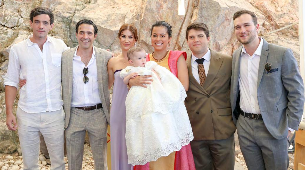 Mateo con sus papás y padrinos, Ricardo Espinosa, Lucía González, Adri de la Maza, Patricio Valle, Ana Sofía Solana y Victorio Ortiz