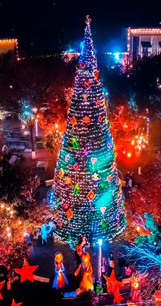 - Villa Iluminada: En varios puntos de la ciudad, como el Zócalo, se instalan villas iluminadas con luces, figuras y nacimientos monumentales.