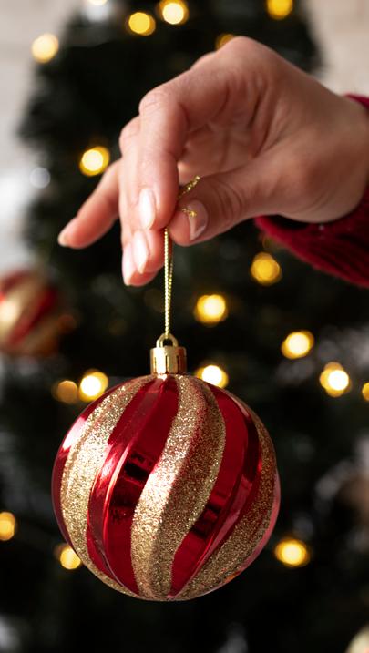 - Distribución: Coloca las esferas más grandes en la parte inferior y las más pequeñas en la parte superior del árbol para darle un efecto equilibrado. Combina acabados mate, brillantes y texturizados para añadir profundidad.