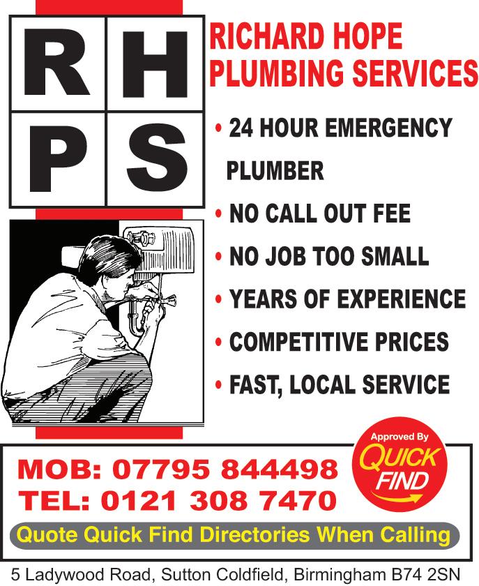 14 Central Heating www.quickfinddirectories.co.uk LIVINGSTONE HEATING & PLUMBING FULLY QUALIFIED GAS SAFE REGISTERED ENGINEER! • BOILERS • HEATING • FIRES • COOKERS • GAS LEAKS • WATER LEAKS 3 BOILER BREAKDOWN SPECIALIST 3 POWERFLUSH 3 NEW INSTALLATIONS • OVER 25 YRS EXPERIENCE • GAS, PLUMBING & HEATING SPECIALISTS • BREAKDOWN REPAIR & PROBLEM SOLVING • FRIENDLY & RELIABLE SERVICE • FREE NO OBLIGATION QUOTATIONS • NO CALL OUT FEE! Covering: Sutton Coldfield & surrounding areas FULL BATHROOM & KITCHEN DESIGN & INSTALLATION CALL IAN : 07923 248367 EMAIL: livingstone.heating@gmail.com WEB SITE: www.lhpgas.co.uk No: 619407 • BOILER BREAKDOWNS & INSTALLATION • GAS FIRE & COOKER INSTALLATION • SERVICING/LANDLORD CERTIFICATES • GENERAL PLUMBING FREE QUOTATIONS 07850 476 497 shgasandplumbing@gmail.com Ben Rose: 07885 687 352 Email: info@meregreengasandplumbing.co.uk Blackberry Lane, Sutton Coldfield, West Midlands B74 4JF