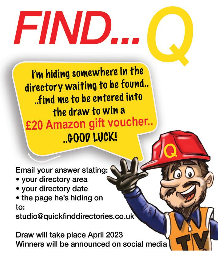 OUR W E ETISB Q (and surrounding areas) Sutton Coldfield FIND US AT Established Since 2004 UICKFIND Est. 2004 February - April 2023 Find them FASTER on our newly launched website: www.quickfinddirectories.co.uk ✓ Trusted Traders ✓ Online Directory ✓ View & Leave Recommendations ✓ Vetted & Approved Businesses Still the leading Trade Directory! ✓ New Home & Lifestyle Section From Page 47