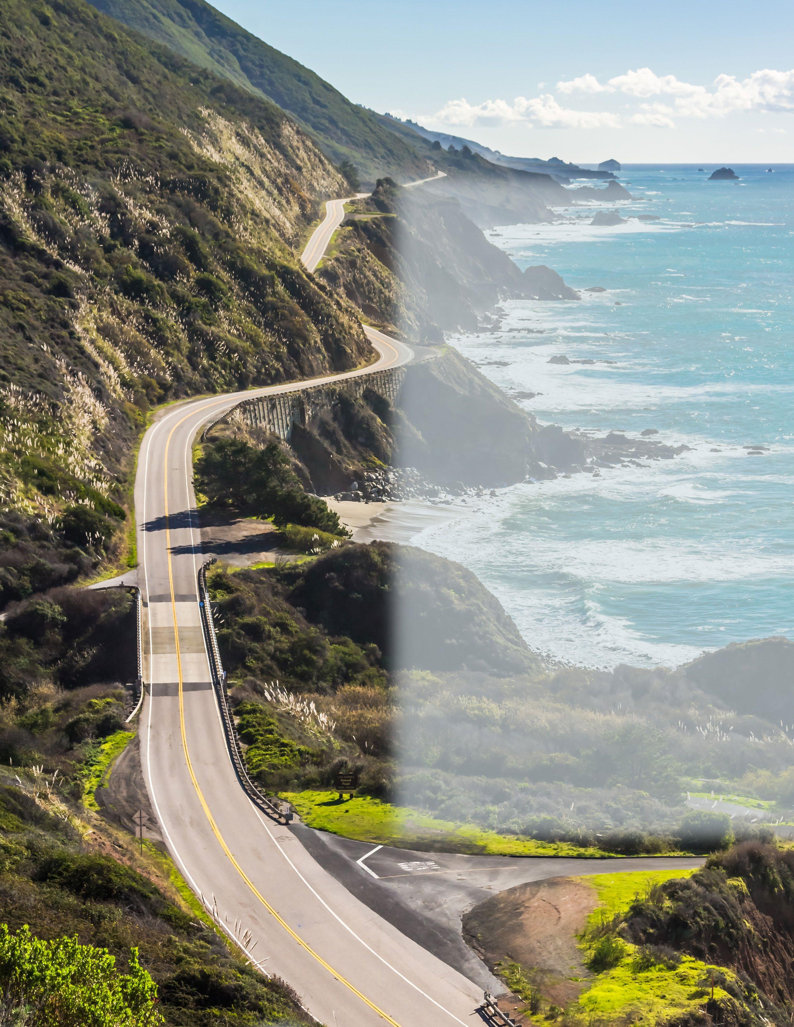 16 Pfeiffer Beach 28 Tips for Travel 29 Poison Oak 30 Cell Signal 30 Surf Advisory 31 Traffic Advisory 34 Coastal Fog/Clouds 36 Bixby Bridge 38 McWay Falls 44 Wildlife 46 California Condors 7 Introduction to the Big Sur Coast What’s Inside...