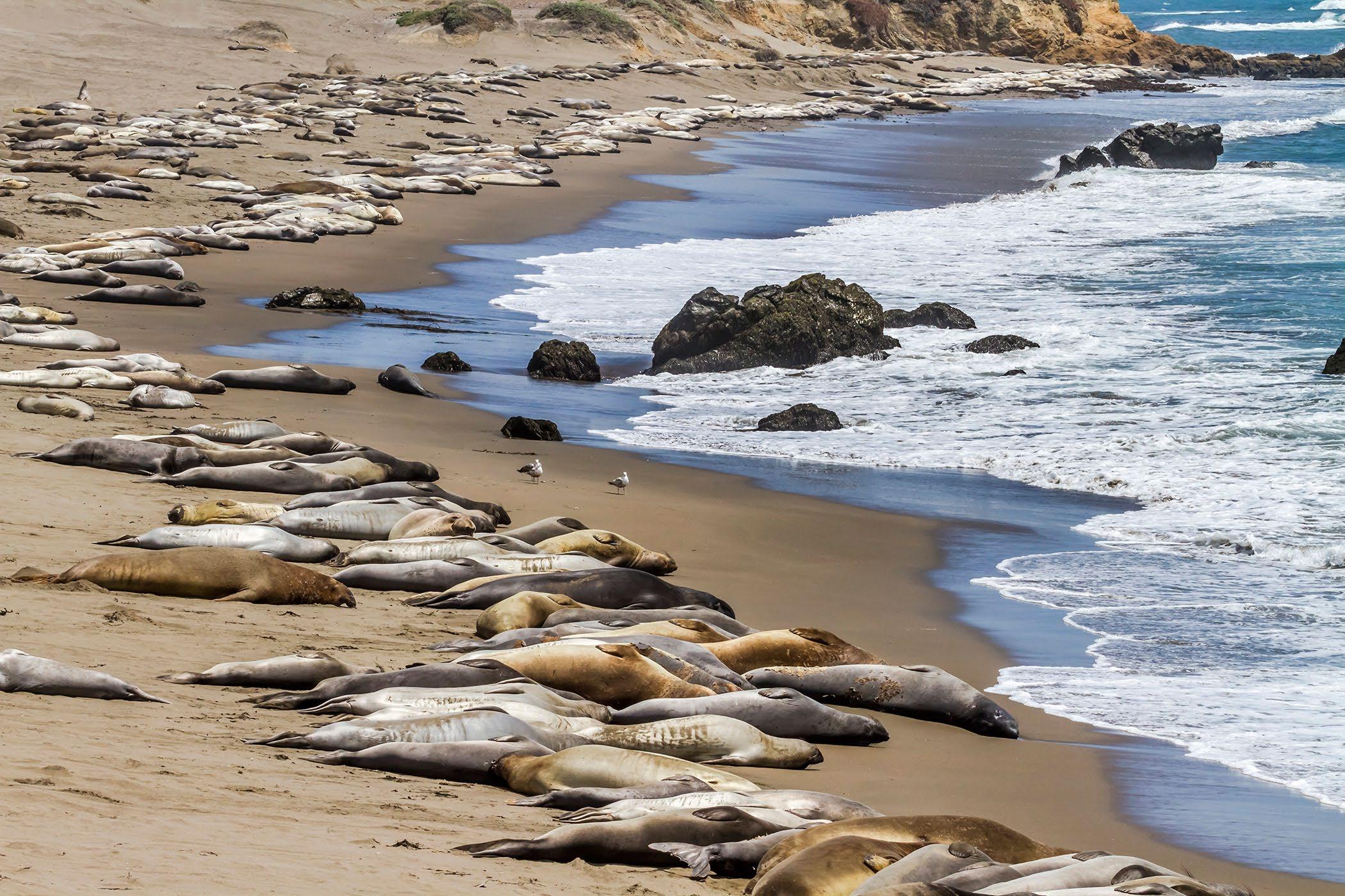 Elephant Seals resting and sunning themselves on the beach near Piedras Blancas.