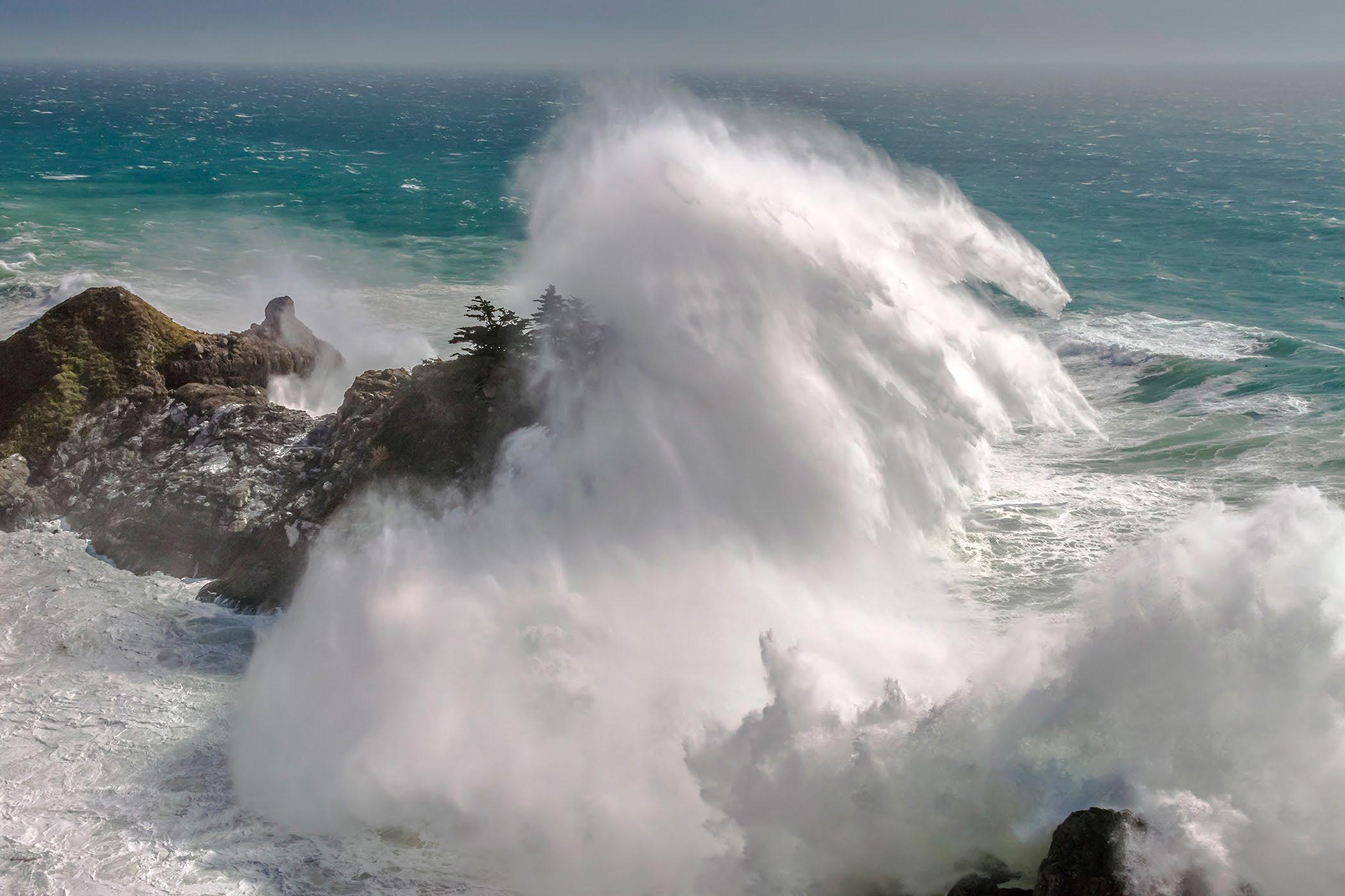 Huge waves at McWay Cove at Julia Pfeiffer Burns State Park.
