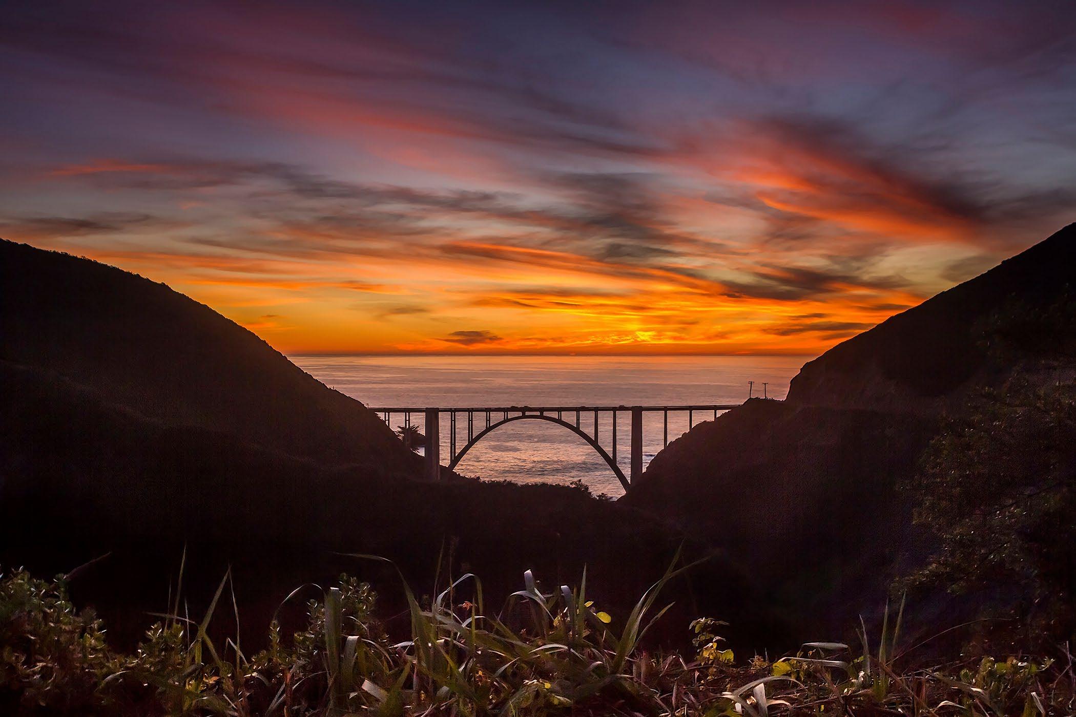 Sunset at Bixby Bridge from the Old Coast Road, California highway 1.