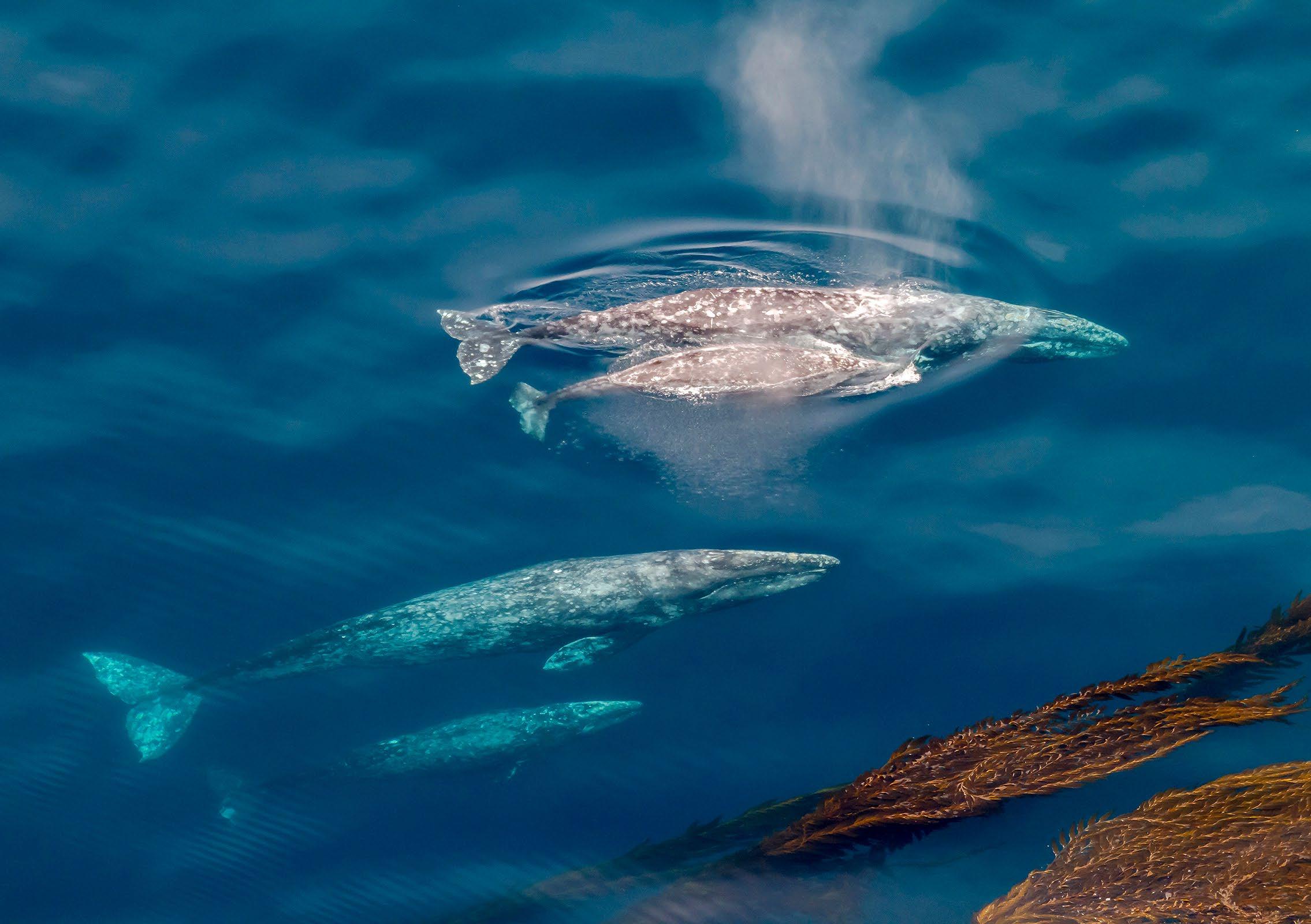 Two pairs of Gray Whales and Calves - No drone. Drone use is illegal on much of the coast.