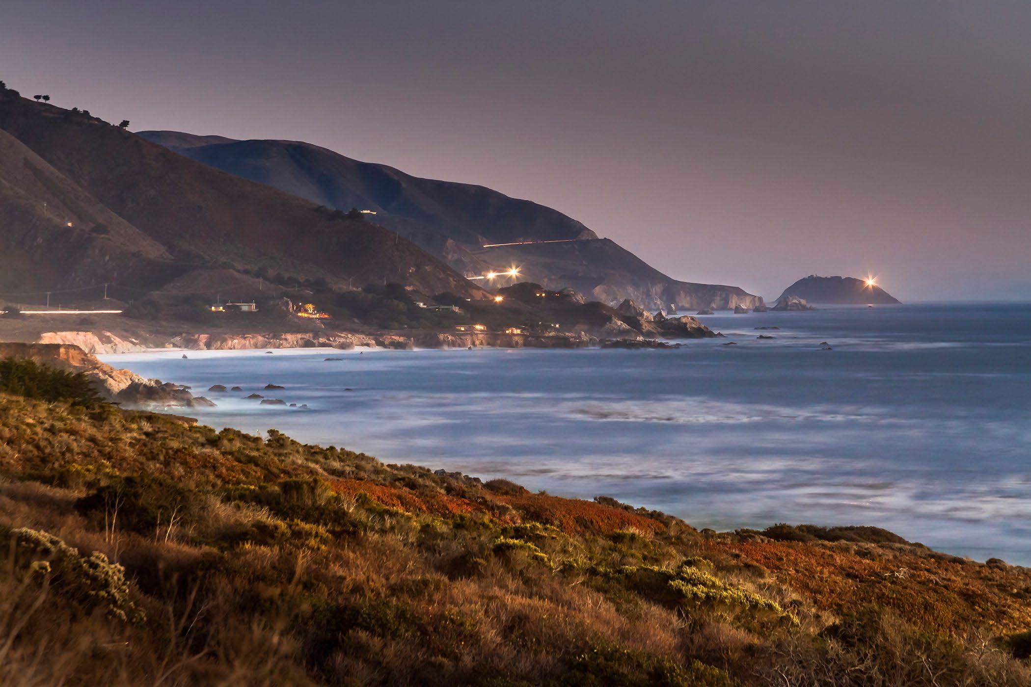 Late afternoon view of Rocky Point and Highway 1.