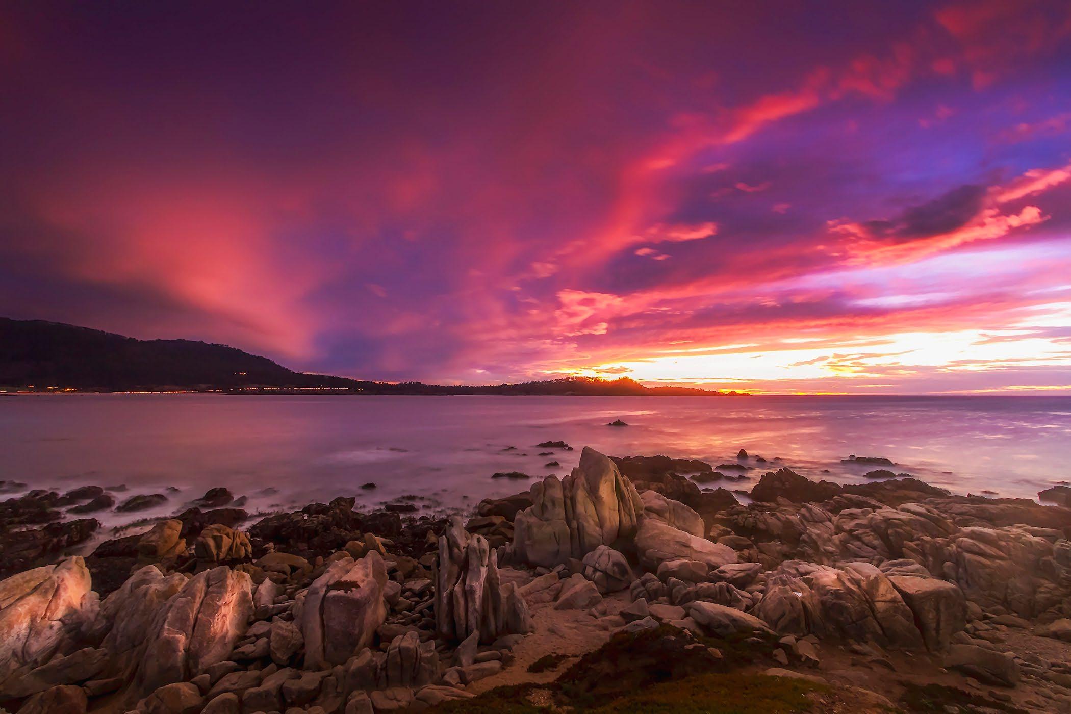 Carmel Bay Sunset with Point Lobos in the distance.